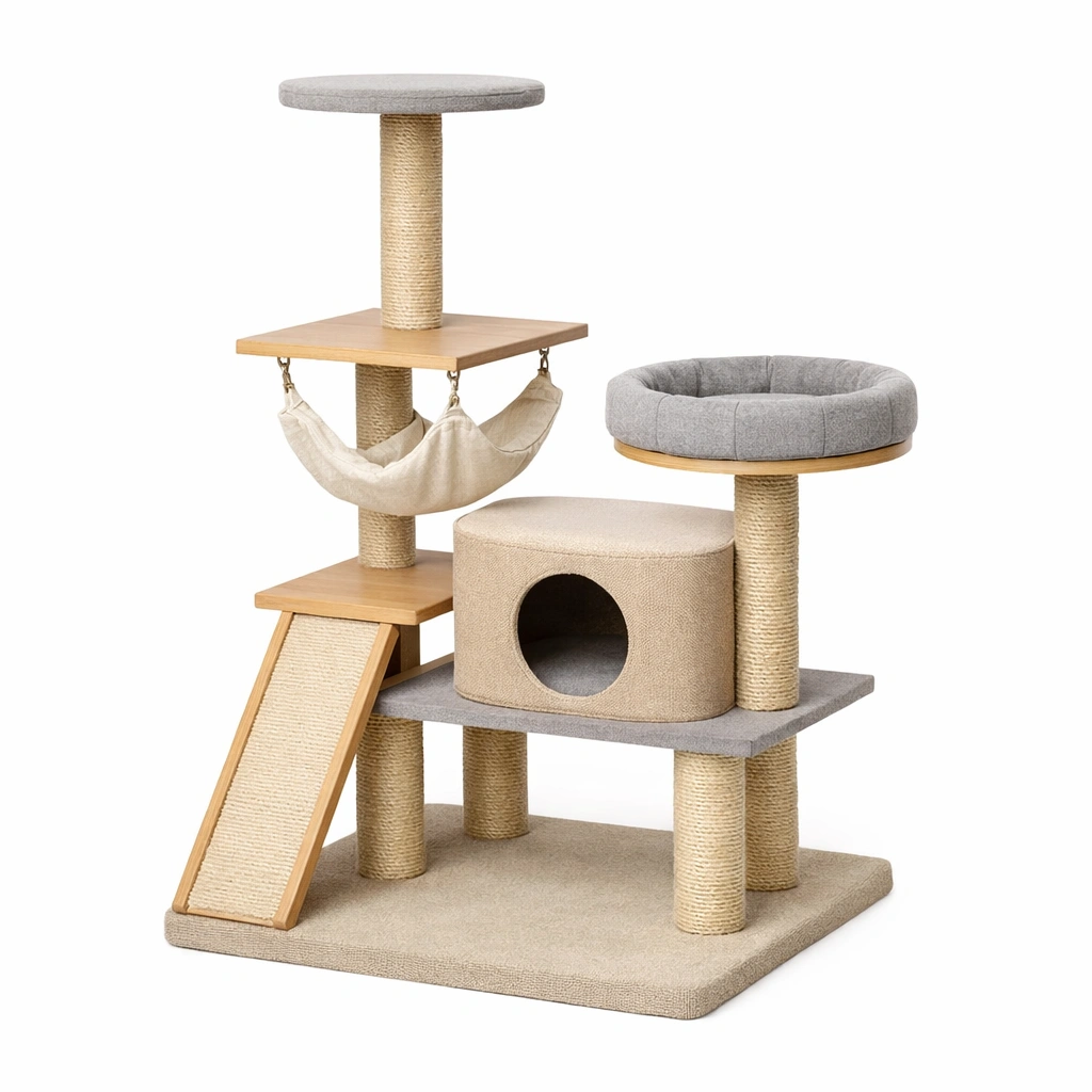 Kratzbaum MDF Holz Plüsch Beige Grau