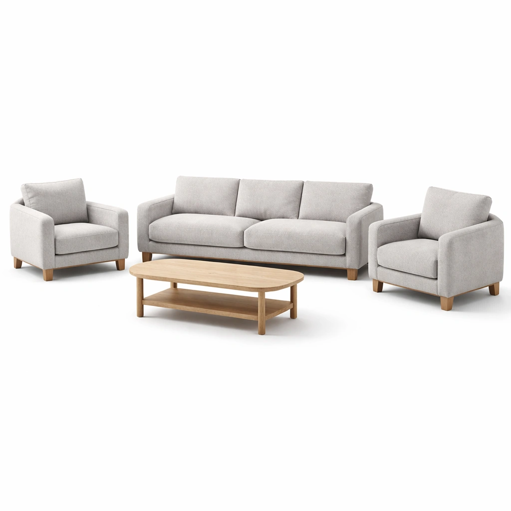 Sofaset Stoff Eiche Beige