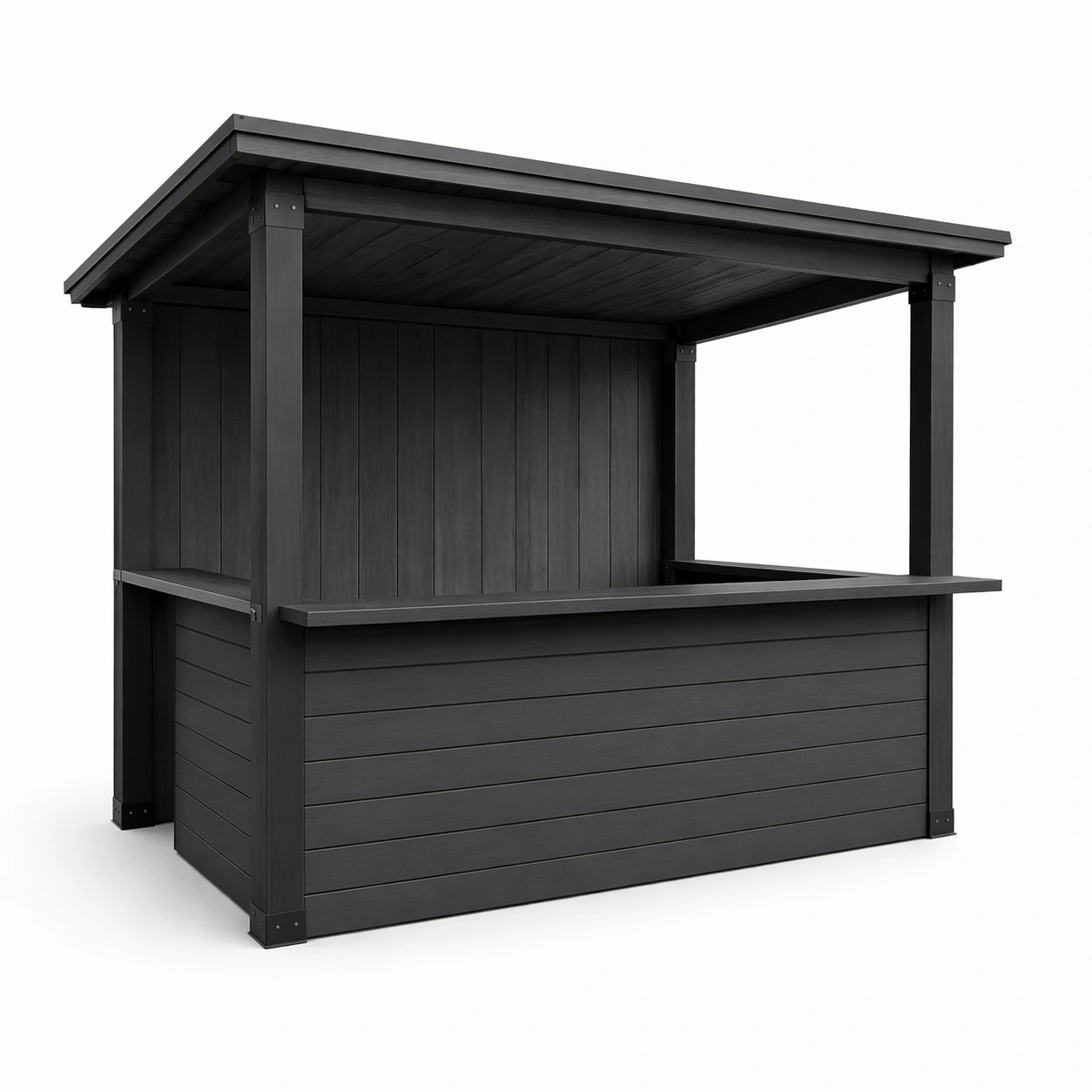 Diese Gartentheke besteht aus hochwertigem Holz-Verbundwerkstoff, der eine langlebige und stabile Bauweise garantiert. Die Oberfläche ist witterungsbeständig und optimal für den Einsatz im Außenbereich gestaltet.