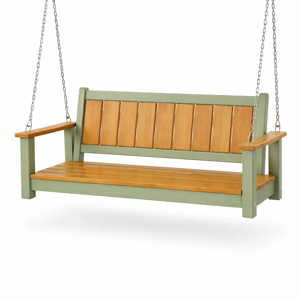 Verandenschaukel Eichenholz Stahlketten Grün Natur